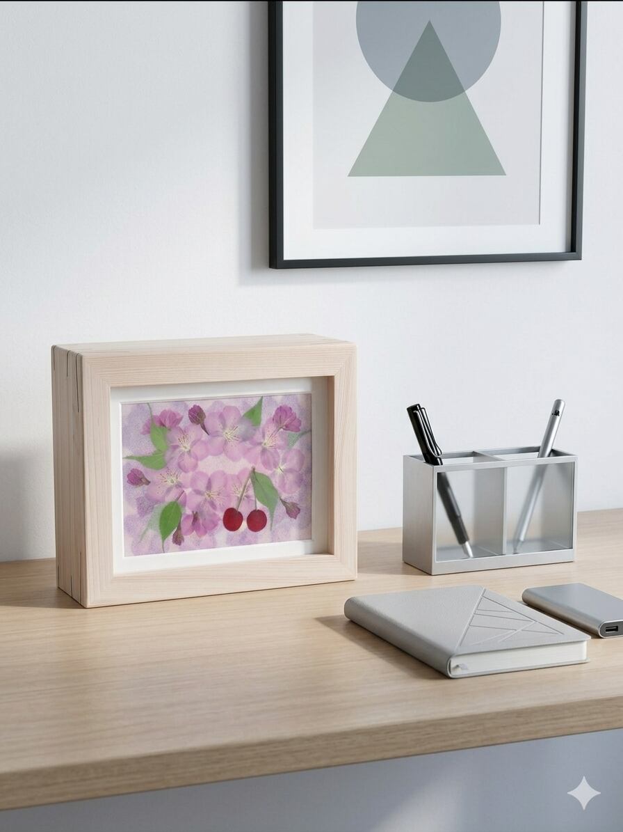季節のお花を押し花アートにしてひのきのBOXに詰め込みました!